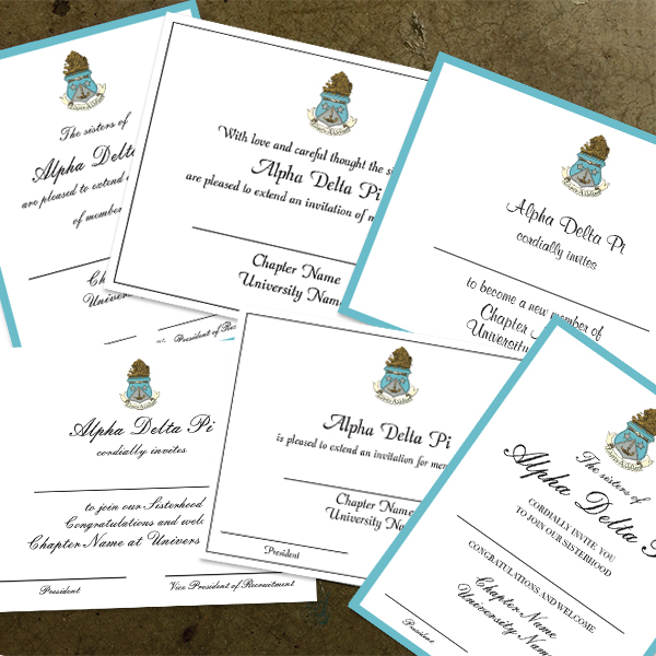 Foldover invitations and 5×7 flat invitation size available. Contact us for details. info@sororitygirlstore.com 615-627-0049