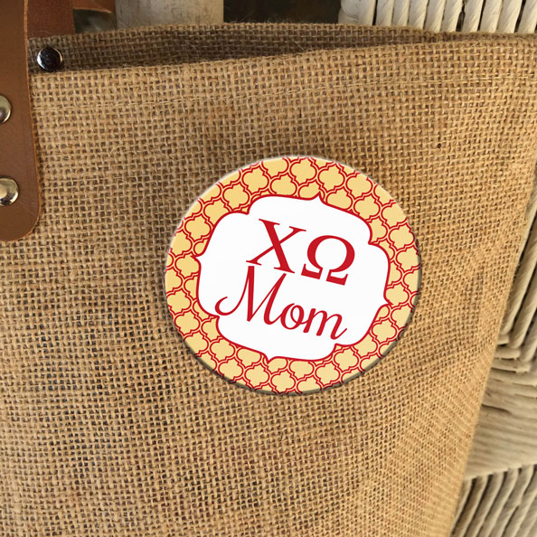 This darling 3″ round button is the perfect favor for Moms weekend! Want a custom design for the event? Give us a call!
