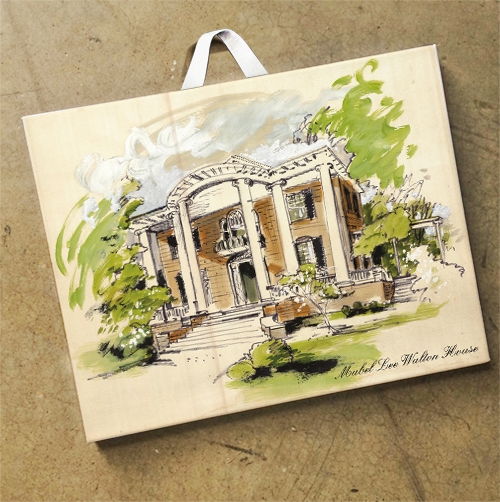 Beautiful printed canvas featuring a vintage watercolor illustration of Walton House.
